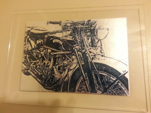 Reverse painted on plexiglass with silver leaf. It is in the shop, just click the art button above if you want to see more.
